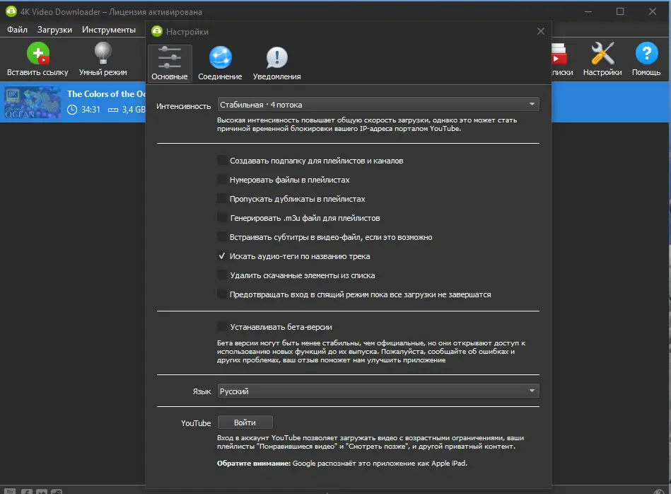 - Возможность загрузки целых плейлистов и каналов с автоматической синхронизацией