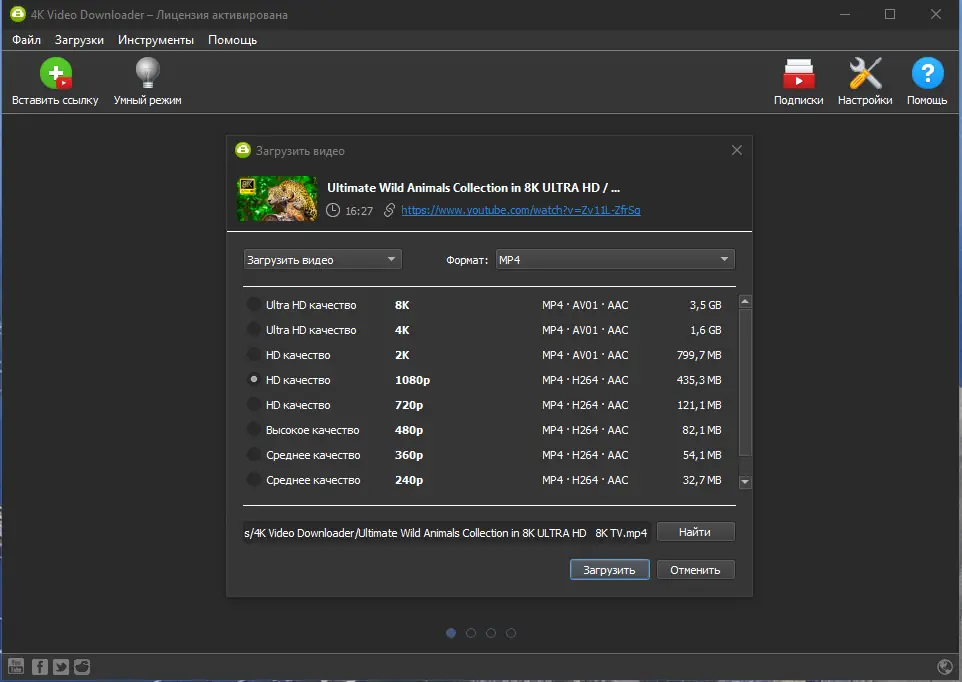 Использование приложения не требует технических знаний. Достаточно скопировать ссылку на видео или плейлист из браузера и вставить её в окно программы с помощью кнопки «Вставить ссылку». После обработки появится список доступных форматов и разрешений. Можно выбрать нужный вариант, указать папку для сохранения и запустить загрузку. Умный режим позволяет автоматизировать процесс, задав предпочтительные параметры один раз. Также поддерживается импорт настроек через реестр и тихая установка с помощью командной строки.