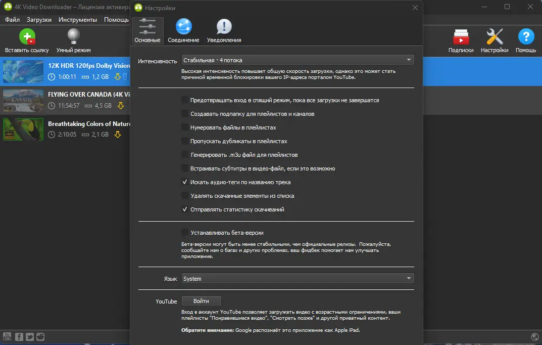 Программа демонстрирует высокую эффективность при работе с видео высокого разрешения и большим объёмом данных. Поддержка множества форматов, автоматическая подписка на каналы и возможность скачивания 360°-видео делают её одной из лучших в категории. Однако, как и любое приложение, она имеет свои особенности, влияющие на пользовательский опыт.