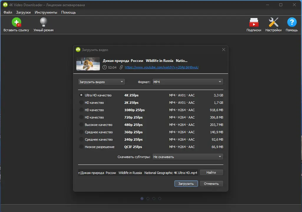 4K Video Downloader — это надёжное приложение для загрузки видео, аудио и субтитров с YouTube и других популярных платформ. Программа поддерживает высокие разрешения, включая 4K и 8K, а также позволяет сохранять плейлисты, каналы и 360°-видео. Удобный интерфейс и широкие настройки делают процесс закачки простым и быстрым.