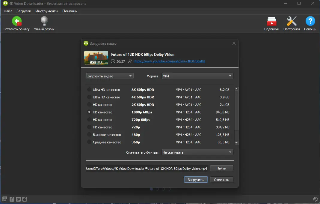 - Поддержка загрузки видео в разрешении до 8K с YouTube и других платформ