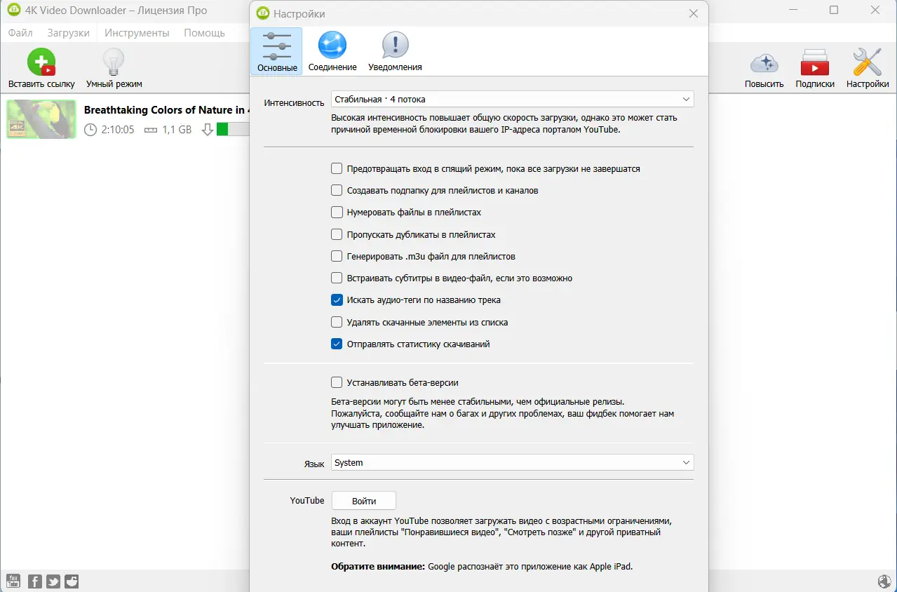 Использование приложения начинается с копирования ссылки на видео или плейлист. Достаточно вставить URL в основное окно программы, и 4K Video Downloader автоматически определит доступные форматы и качества. Пользователь выбирает нужный вариант — видео, аудио или субтитры — и запускает загрузку. Для регулярного обновления контента доступна функция подписки на каналы, при которой новые ролики будут скачиваться автоматически. Умный режим позволяет задать предпочтительные параметры один раз, после чего все последующие закачки будут проходить без дополнительных настроек. Также реализована поддержка прокси, что помогает обходить региональные ограничения на доступ к контенту.