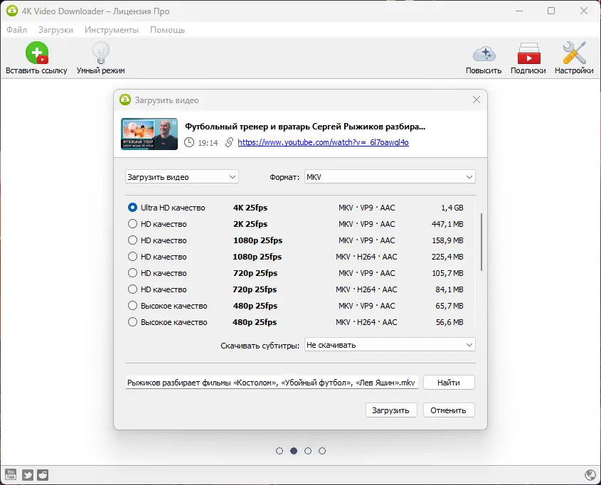 4K Video Downloader сочетает в себе скорость, надежность и широкие возможности для оффлайн-просмотра мультимедиа