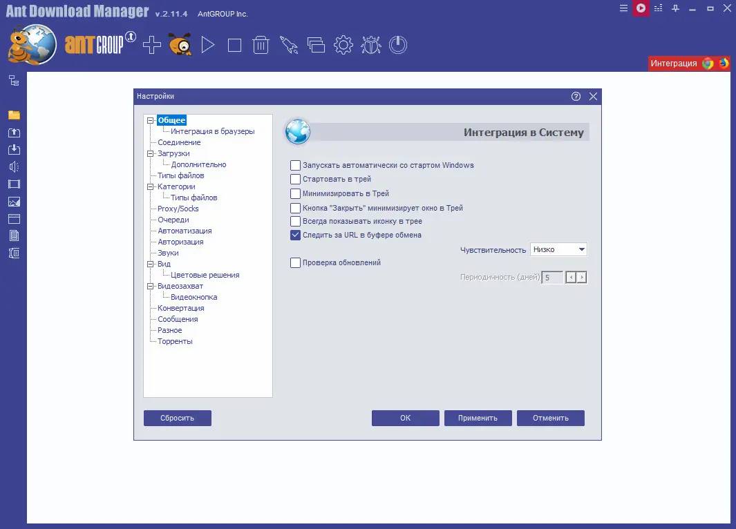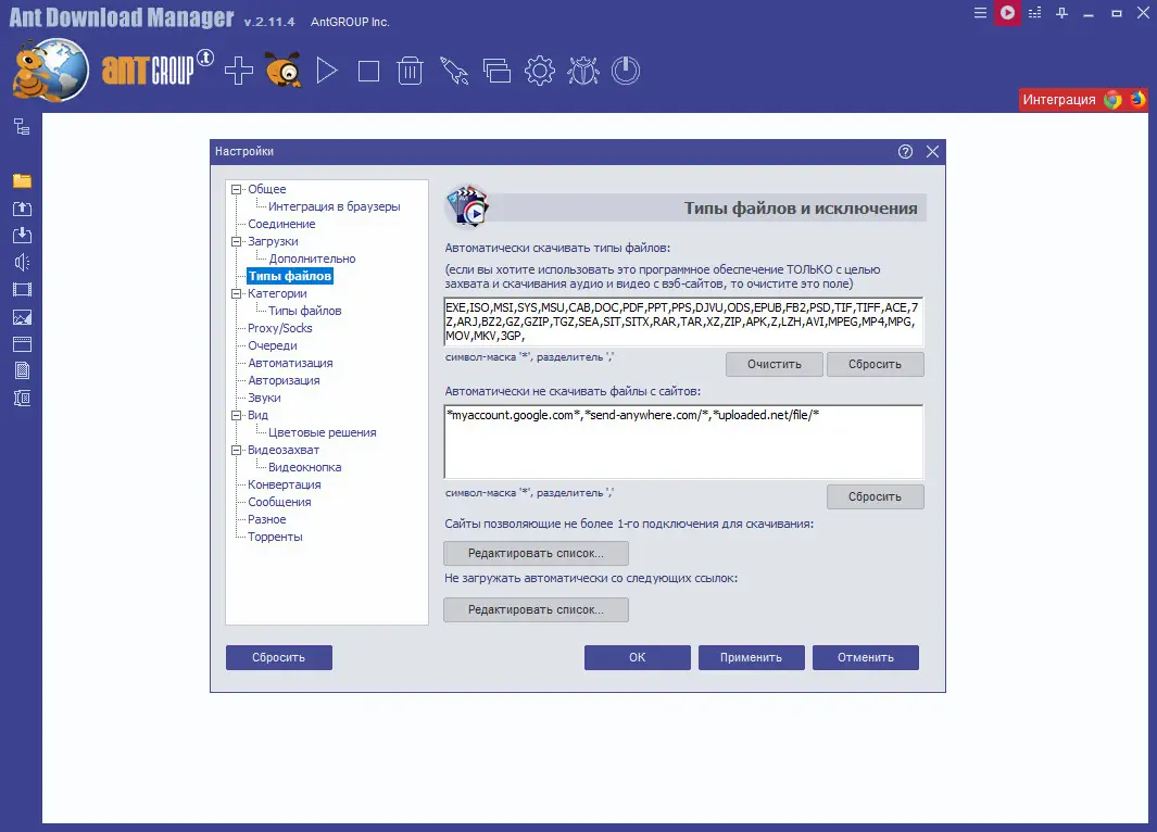 Ant Download Manager (AntDM) — это универсальное решение для эффективного управления загрузками в интернете. Программа использует технологию многопоточной загрузки, что позволяет значительно увеличить скорость передачи данных, особенно при работе с крупными файлами. Она автоматически восстанавливается после сбоев, будь то потеря интернет-соединения, отключение питания или перезагрузка системы. Поддержка различных протоколов, включая защищённые версии HTTP и FTP, делает её надёжным инструментом для скачивания с разных типов серверов. Программа также поддерживает работу с прокси-серверами, что важно при использовании в корпоративных сетях или при обходе географических ограничений.