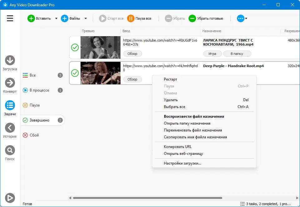 Any Video Downloader Pro — это мощное приложение для загрузки видеороликов с популярных платформ, включая YouTube, Facebook и Dailymotion. Программа поддерживает высокие разрешения, включая 4K и 8K, а также предлагает встроенный конвертер и медиаплеер. Благодаря ускорению загрузки до пяти раз, процесс становится заметно быстрее и удобнее.