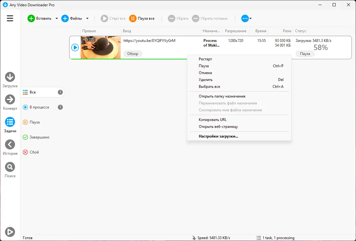 Программное обеспечение демонстрирует высокую эффективность при работе с онлайн-видео. Ускорение загрузки до 5 раз делает процесс более продуктивным, особенно при скачивании контента в высоком разрешении. Поддержка множества форматов и встроенный конвертер расширяют функциональность, позволяя адаптировать видео под любое устройство.