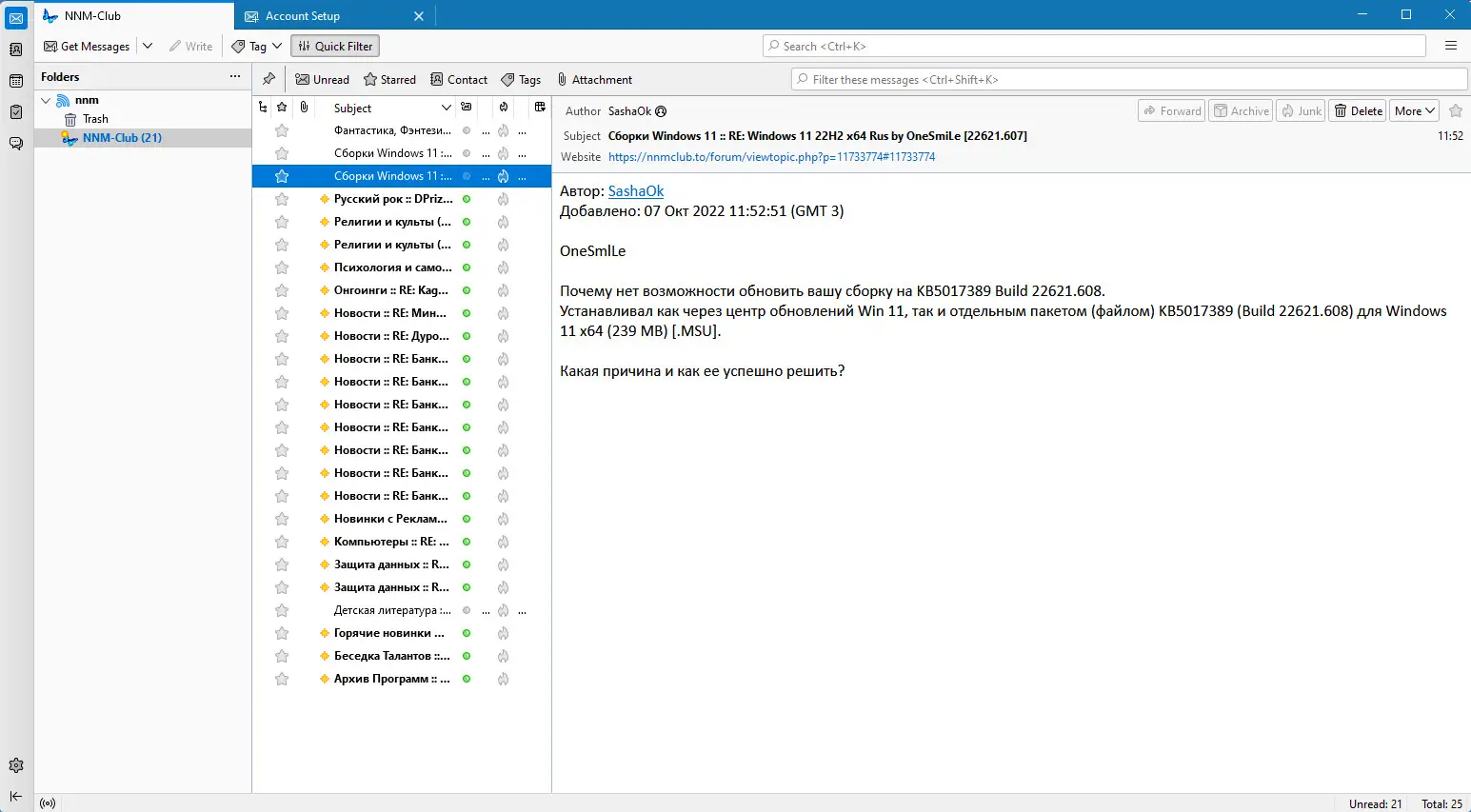 - Исправление критических ошибок, связанных с потерей файлов MSF при поиске по идентификатору сообщения