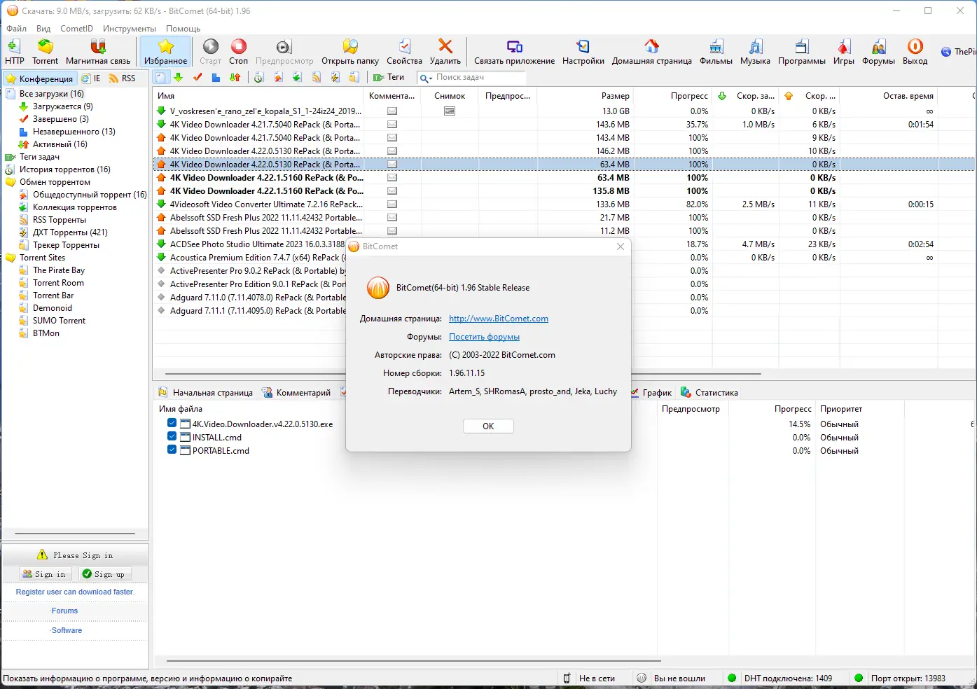 BitComet доступен для бесплатного использования на официальном сайте. Пользователи могут скачать торрент-клиент для операционной системы windows, включая поддержку 32 и 64-битных версий. Портативная сборка позволяет использовать приложение без инсталляции, что удобно при работе на чужих компьютерах. Программа регулярно обновляется, добавляя новые функции и улучшая совместимость. Независимо от типа подключения, в том числе при проблемах с сетью, клиент адаптируется и продолжает работу, даже если порт заблокирован.