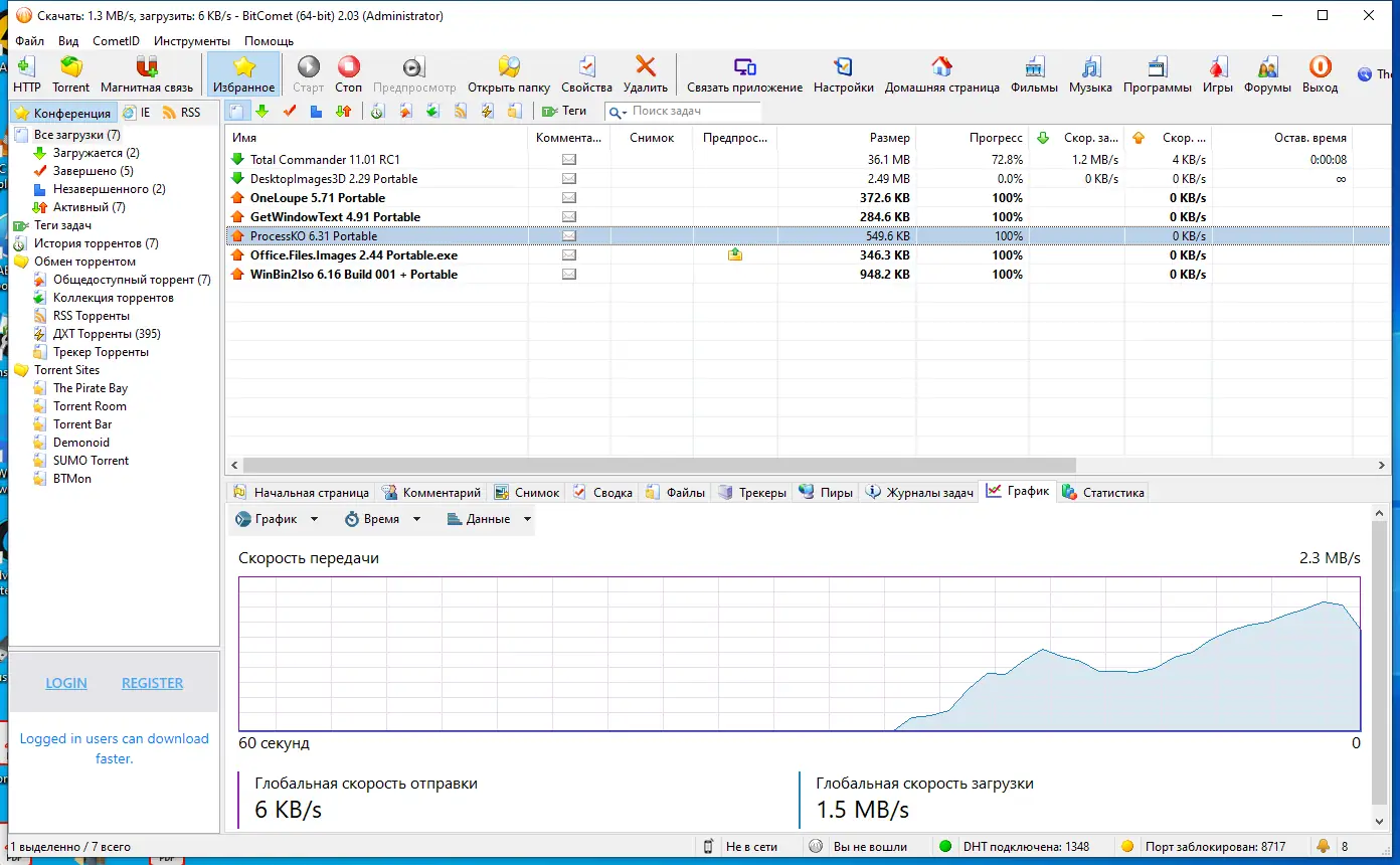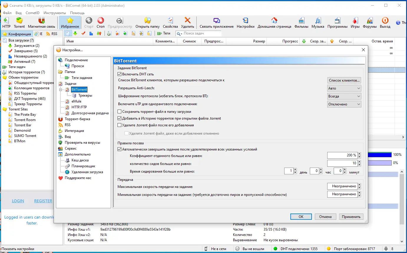 BitComet — это высокопроизводительный клиент для загрузки файлов по протоколу Bittorrent, сочетающий скорость, удобство и широкий функционал. Программа поддерживает современные технологии обмена данными, включая DHT и Magnet-ссылки, а также позволяет эффективно управлять процессами закачки. Благодаря интуитивному интерфейсу и продуманной системе настроек, она подходит как для новичков, так и для опытных пользователей.