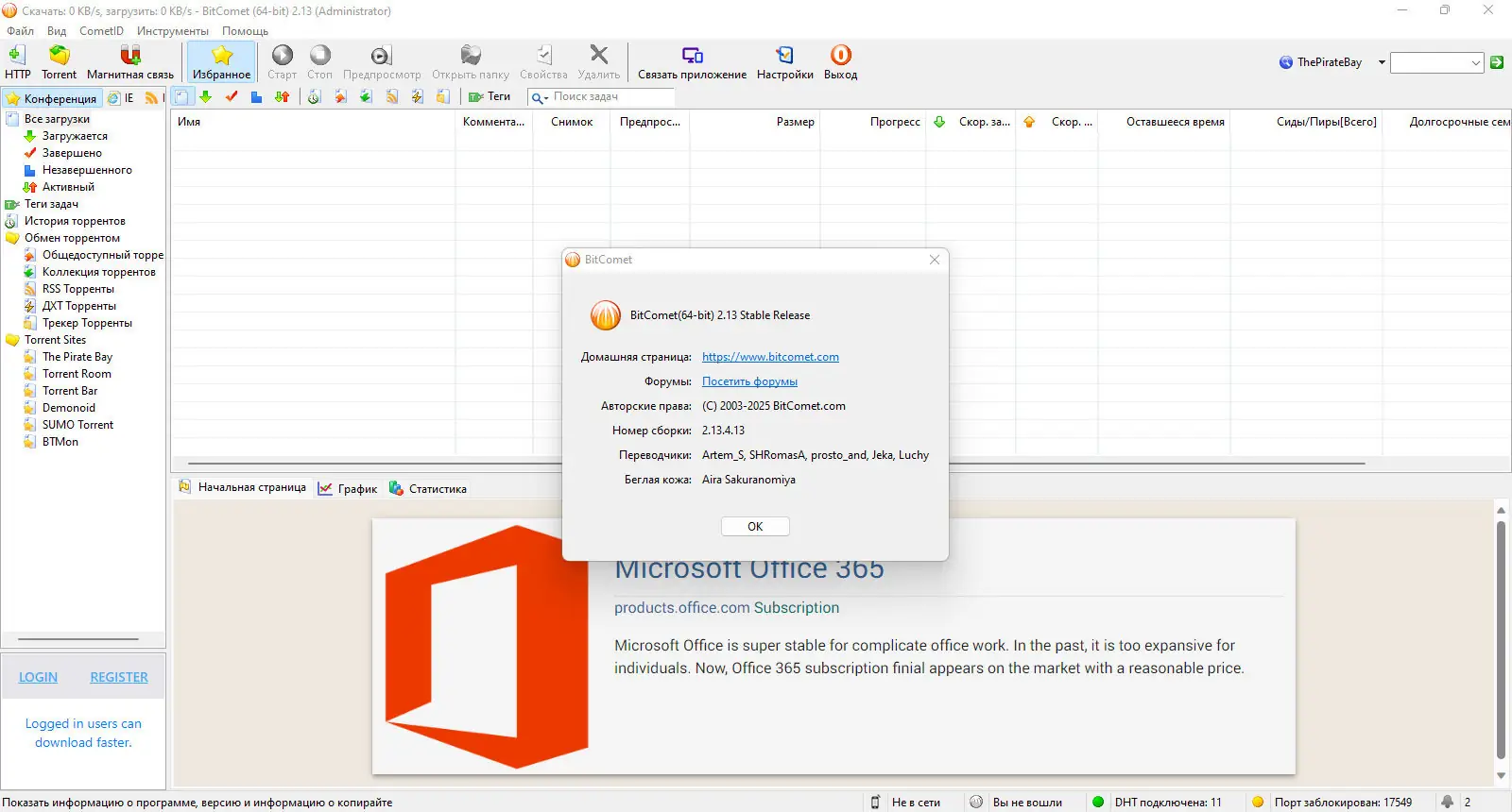 BitComet — это высокопроизводительный клиент для загрузки файлов по протоколу Bittorrent, сочетающий в себе скорость, стабильность и простоту управления. Программа поддерживает современные технологии обмена данными, включая DHT, Magnet-ссылки и работу через прокси-серверы. Благодаря продуманному интерфейсу и расширенным настройкам, она подходит как для новичков, так и для опытных пользователей, которым важно контролировать процесс загрузки.