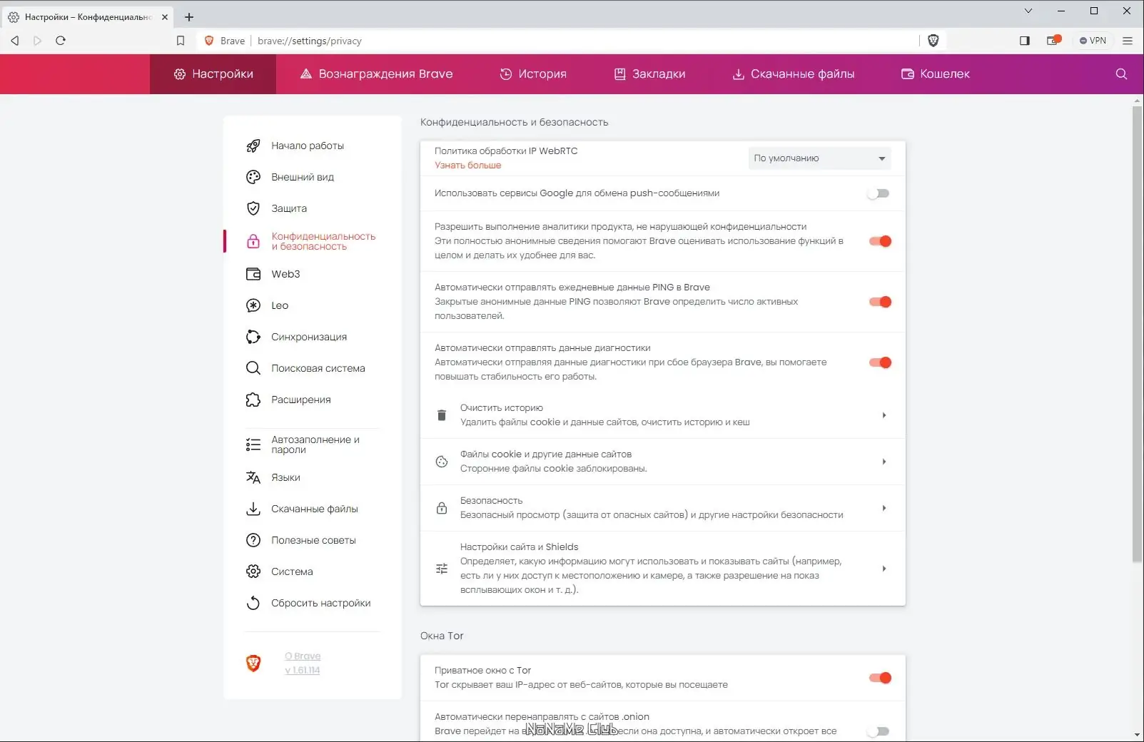 - Интеграция с криптовалютной системой через Brave Rewards