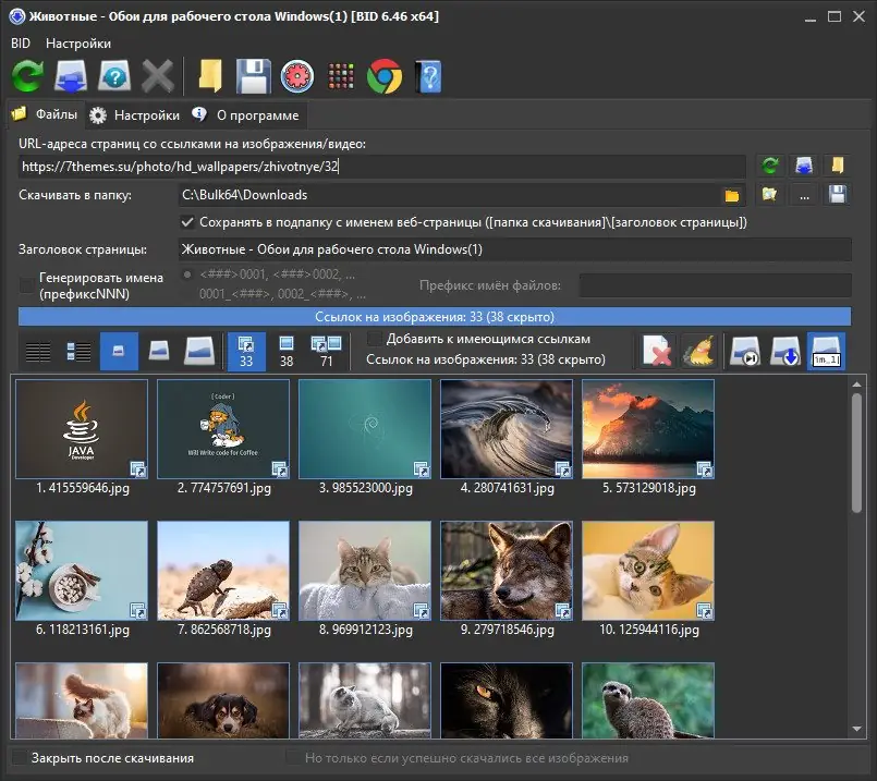 Bulk Image Downloader — универсальное приложение для быстрой загрузки изображений и видео с веб-сайтов, включая галереи, социальные сети и популярные хостинги. Программа автоматически определяет и сохраняет полноразмерные изображения, обходя рекламные вставки и промежуточные страницы. Поддержка множества сервисов и встроенных функций делает её мощным инструментом для массового скачивания контента.