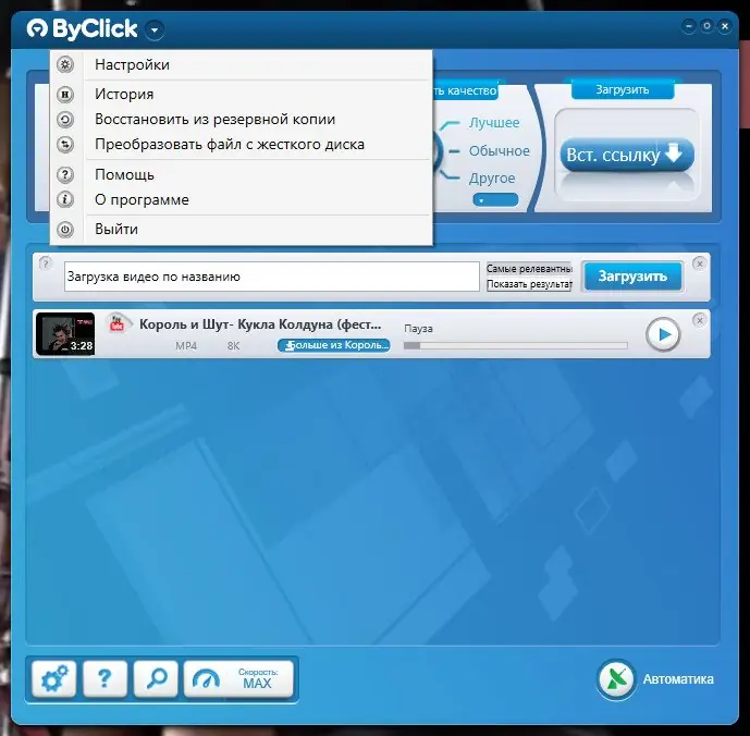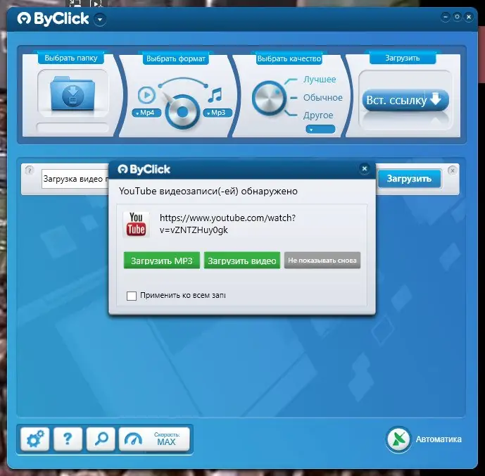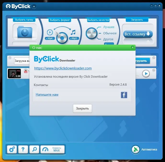 By Click Downloader — это удобное приложение для загрузки видео и аудио с YouTube, Facebook, Vimeo, Dailymotion, RuTube и других популярных платформ. Программа поддерживает высокие разрешения, включая 1080p и 4K, а также конвертацию в различные форматы, включая MP3 и MP4. Благодаря интуитивному интерфейсу и расширенным функциям, загрузка медиафайлов становится простой и быстрой.