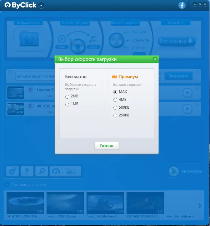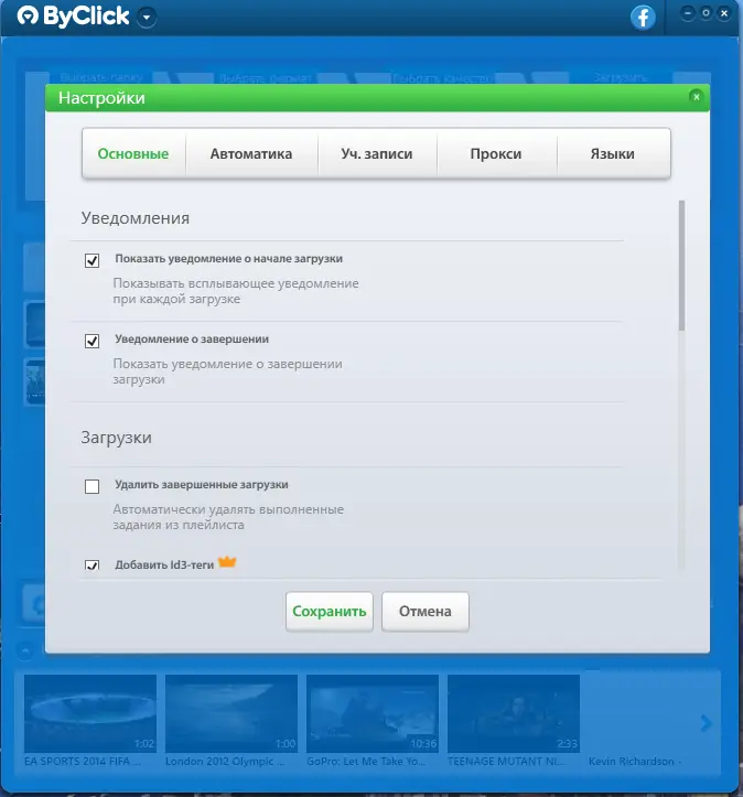 ByClick Downloader — программа для скачивания видео с YouTube, Facebook, Vimeo, RuTube, OK.ru и других популярных платформ. Поддерживает загрузку в различных форматах и разрешениях, включая 4K, а также конвертацию в аудио. Простой интерфейс и высокая скорость делают процесс скачивания максимально удобным.