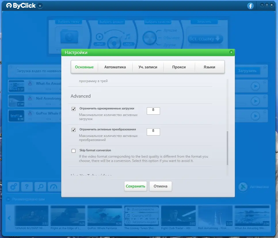 - Конвертация в различные форматы: MP3, MP4, AVI, MKV и другие