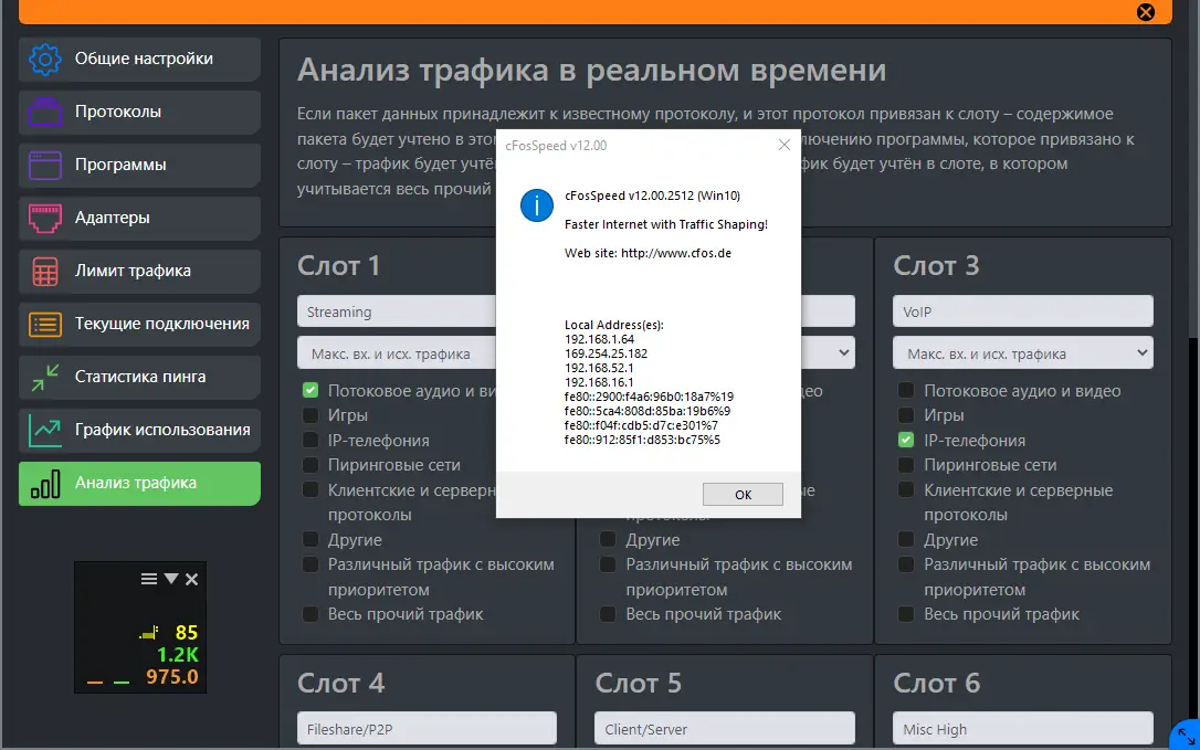 Программа cFosSpeed функционирует как сетевой драйвер, интегрирующийся в систему на уровне сетевого стека. Она анализирует исходящий и входящий трафик в реальном времени, распределяя приоритеты между различными типами данных. Это позволяет минимизировать задержки для критически важных приложений, таких как VoIP, стриминг или онлайн-игры, даже при активной закачке файлов через торрент-клиенты или облачные сервисы. Решение совместимо с широким спектром подключений, включая DSL, кабель, UMTS, ISDN и мобильные технологии 2G и 3G.