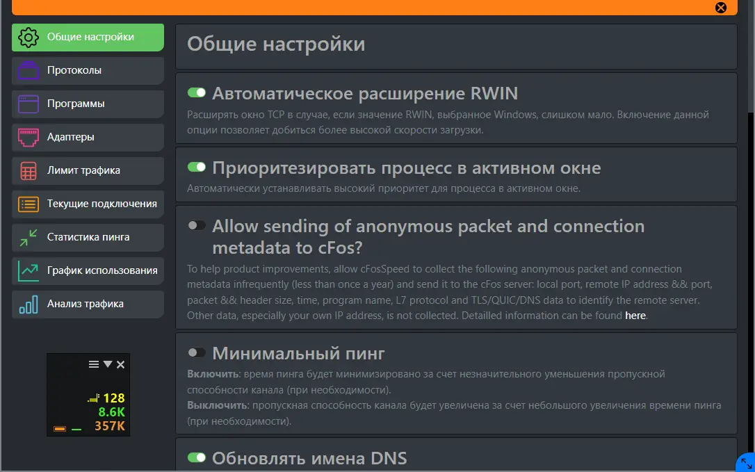После установки cFosSpeed автоматически активируется и начинает анализировать сетевую активность. Пользователю доступно окно статуса, где отображаются текущие потоки данных, загруженность канала и приоритеты приложений. При необходимости можно вручную настроить правила распределения трафика, указав, какие программы должны получать повышенный приоритет. Программа также предлагает режим тихой установки через командные ключи, что удобно при массовом развёртывании. Настройки адаптируются со временем, позволяя системе оптимизировать производительность без постоянного вмешательства пользователя.