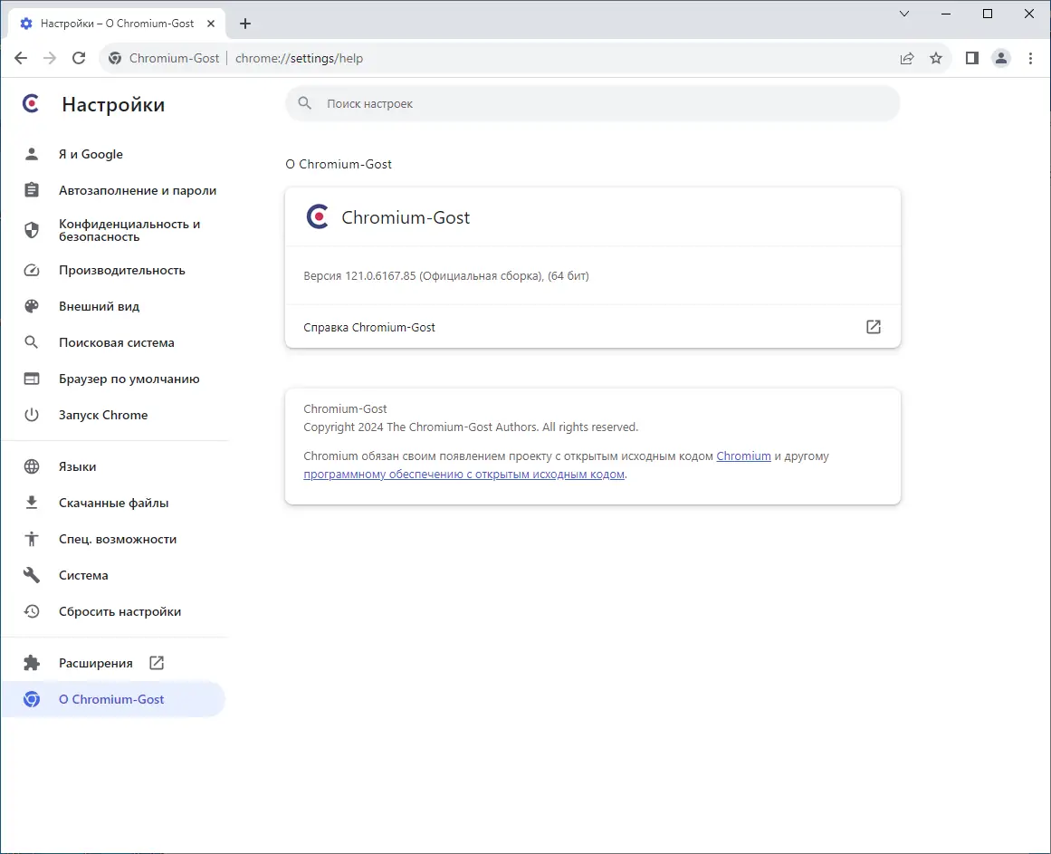 Chromium-Gost — это модифицированная версия популярного браузера на базе Chromium с поддержкой криптографических алгоритмов ГОСТ, предназначенная для безопасного доступа к сайтам, использующим российские стандарты шифрования. В отличие от стандартных решений, браузер интегрирует интерфейс msspi вместо BoringSSL, что обеспечивает корректную работу с отечественной криптографией. Программа подходит для пользователей, которым требуется совместимость с защищёнными государственными и корпоративными ресурсами.