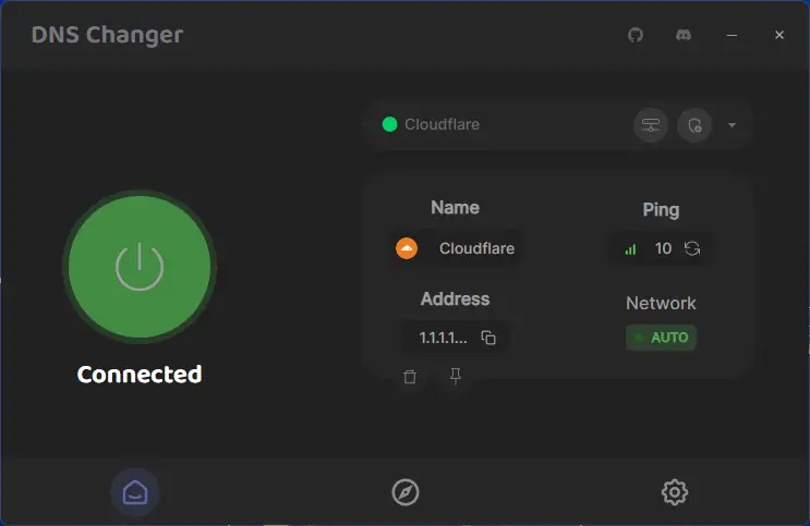 DNS Changer — это легковесное приложение для быстрой и удобной смены DNS-серверов на компьютере под управлением Windows. Программа позволяет мгновенно переключаться между популярными публичными серверами, такими как Cloudflare, Asiatech и Electro Team, а также добавлять собственные. Интерфейс отличается простотой и ориентирован на минимальное время настройки, что делает инструмент подходящим как для новичков, так и для продвинутых пользователей. Отображение ping, статуса подключения и текущего адреса делает процесс прозрачным и контролируемым.