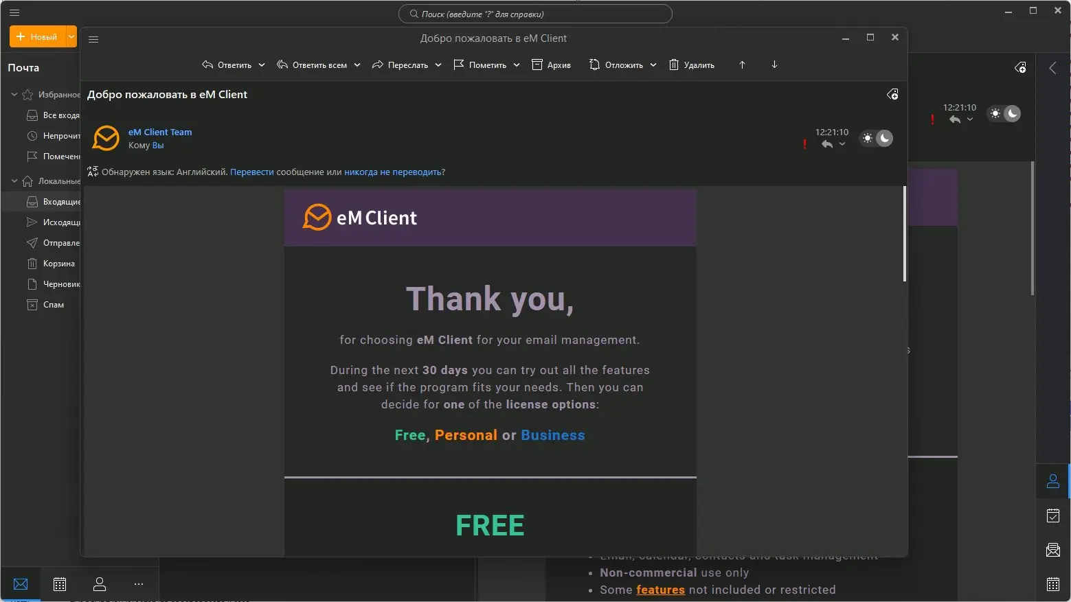 Описание eM Client