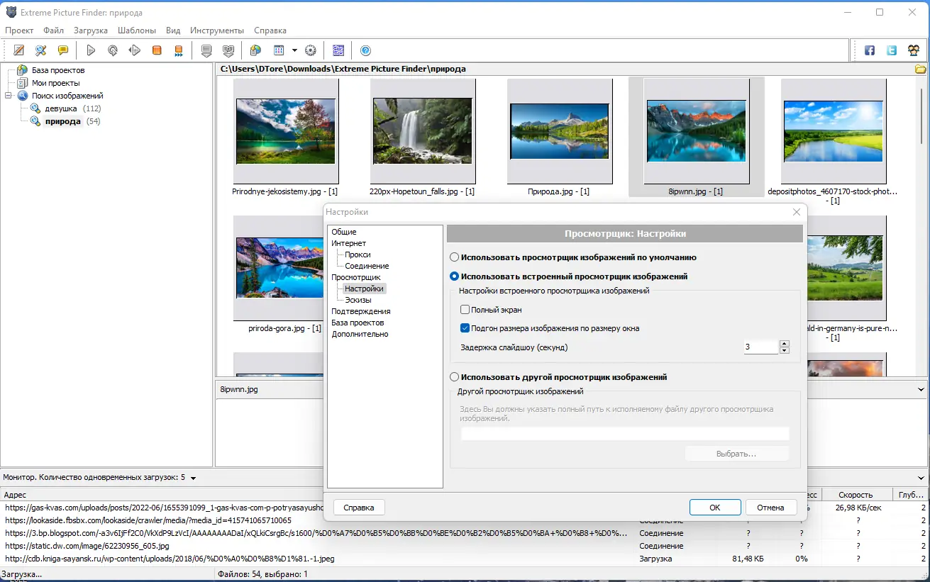 Extreme Picture Finder предлагает широкий функционал, подходящий как для новичков, так и для опытных пользователей. Интерфейс переведён на несколько языков, включая русский, что упрощает освоение. Программа поддерживает настройку множества параметров — от количества потоков до правил фильтрации и обработки ссылок. Наличие встроенной URL-базы и режима просмотра проектов делает её универсальным инструментом для сбора цифрового контента. В то же время, из-за высокой скорости загрузки, возможна нагрузка на систему при работе с большими объёмами данных.