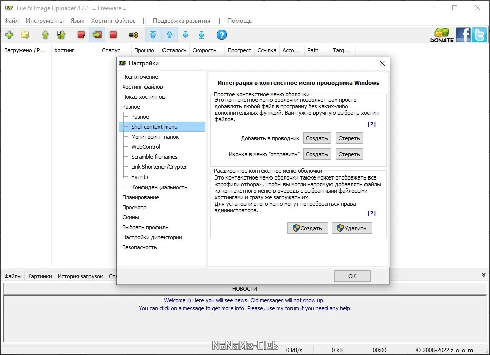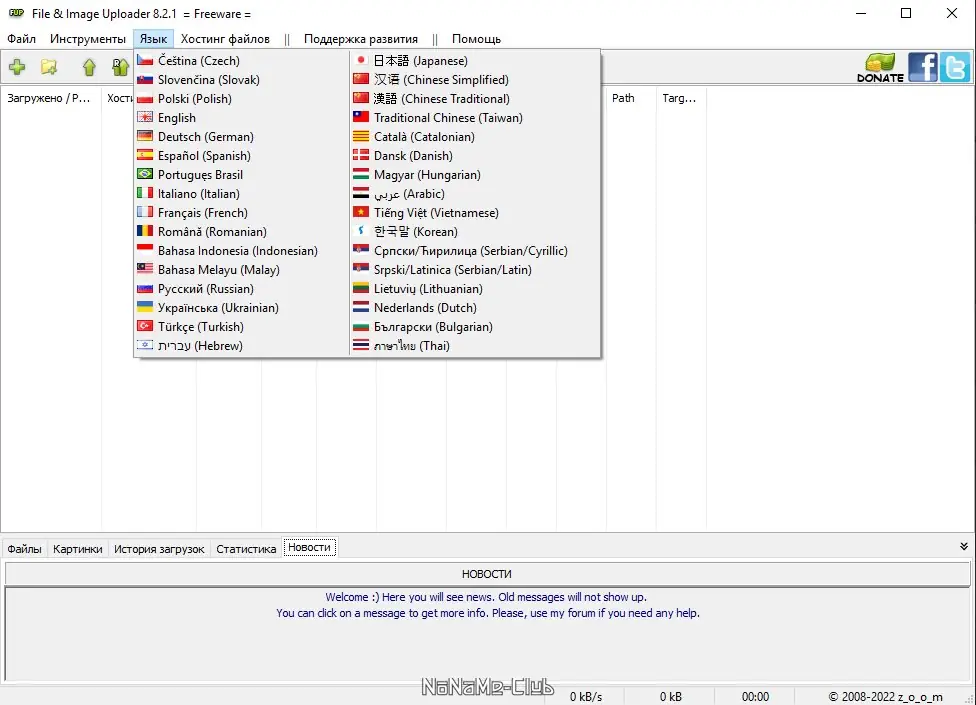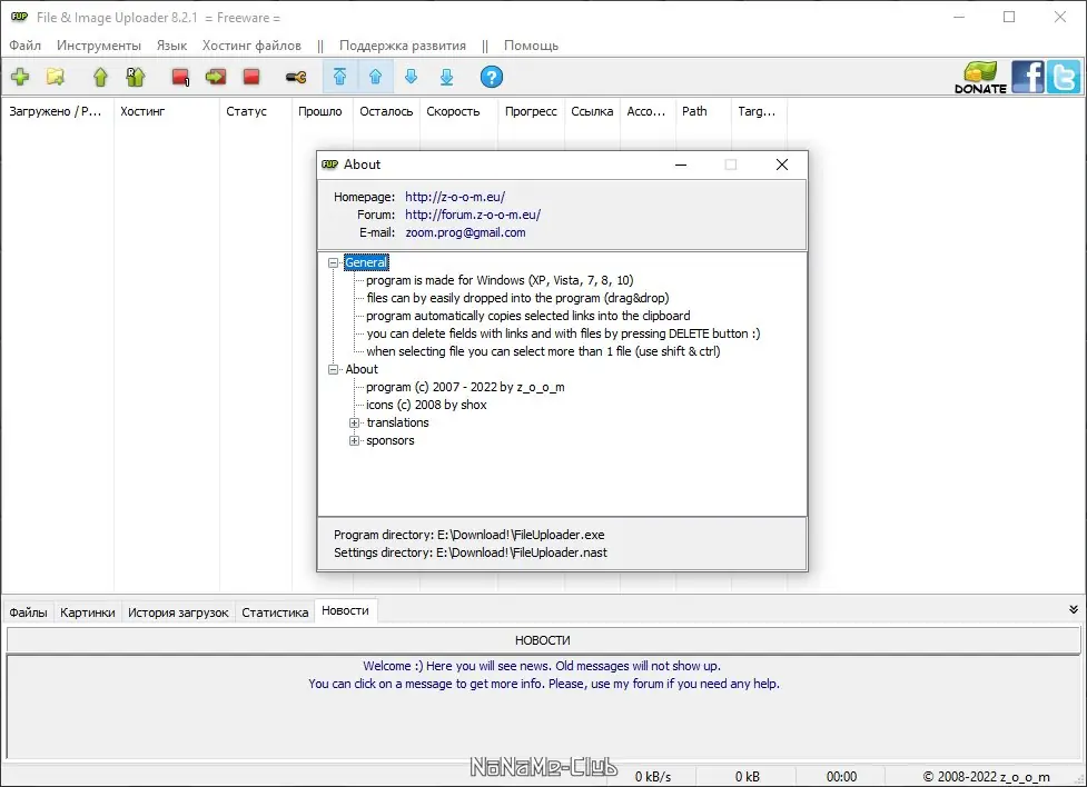 - Поддержка более чем 250 серверов для загрузки файлов и изображений