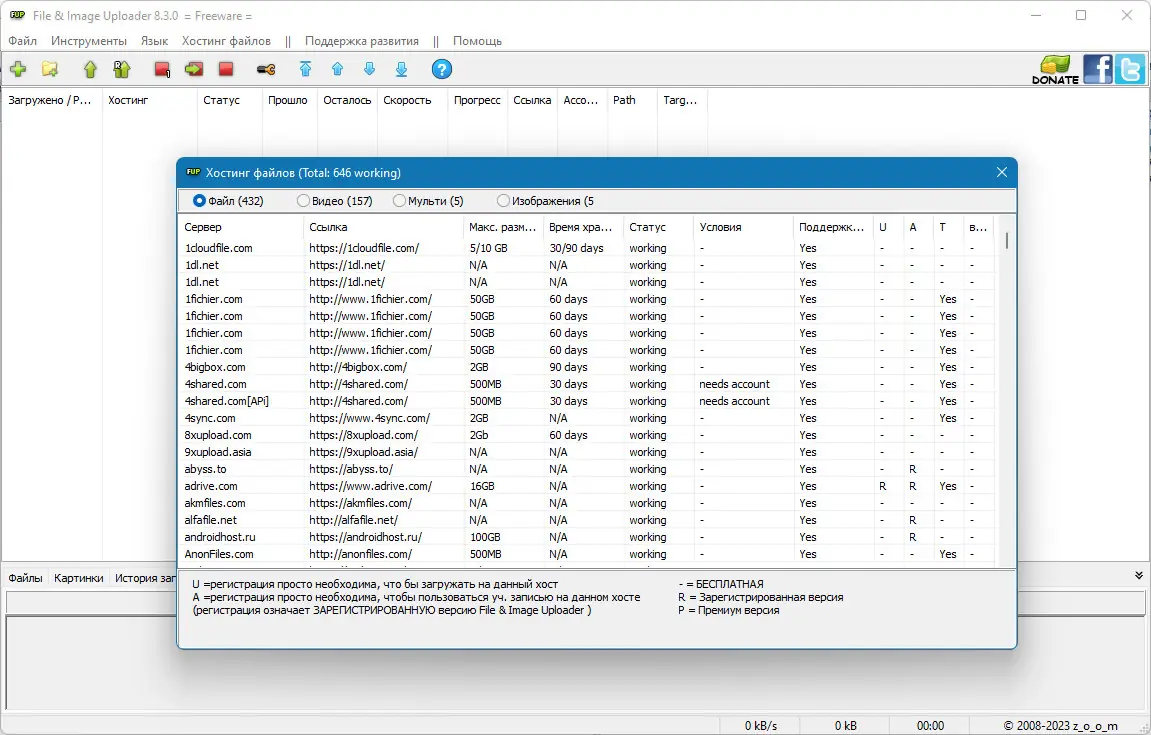 - Поддержка свыше 250 файловых хостингов, включая популярные и нишевые платформы.