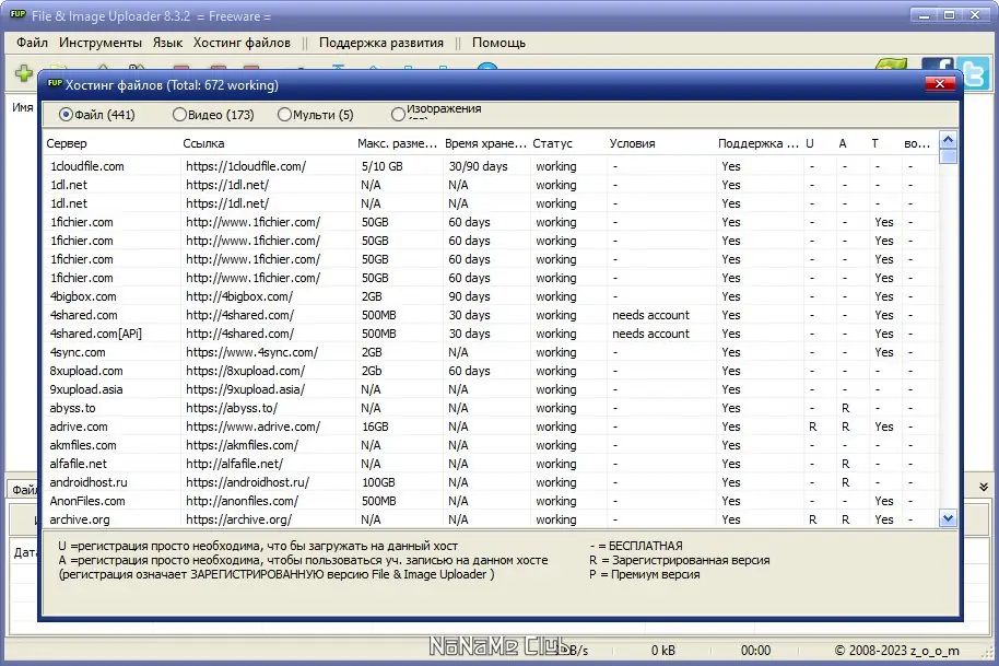 - Возможность загружать файлы на премиум-аккаунты для увеличения скорости и снятия ограничений