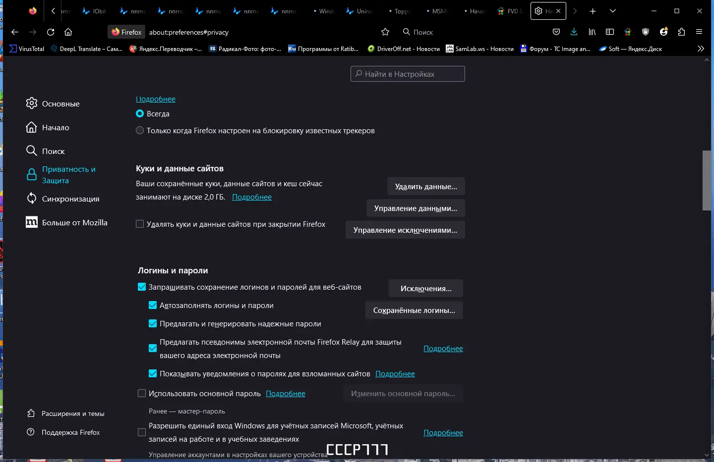 - Шифрование сохранённых паролей с помощью мастер-пароля для дополнительной безопасности