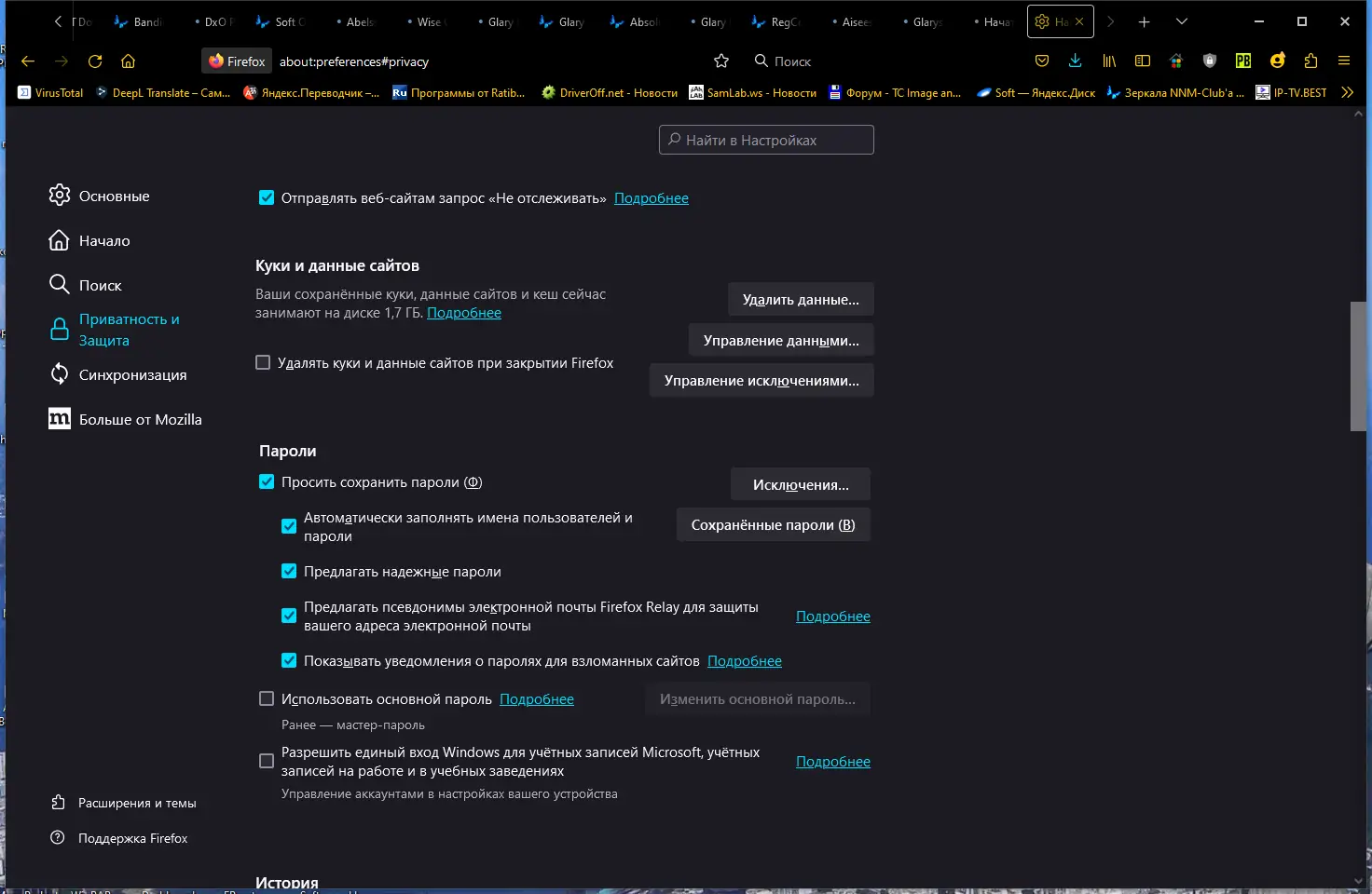 - Менеджер паролей с мастер-паролем шифрует сохранённые данные, обеспечивая безопасность при посещении интернет-ресурсов.