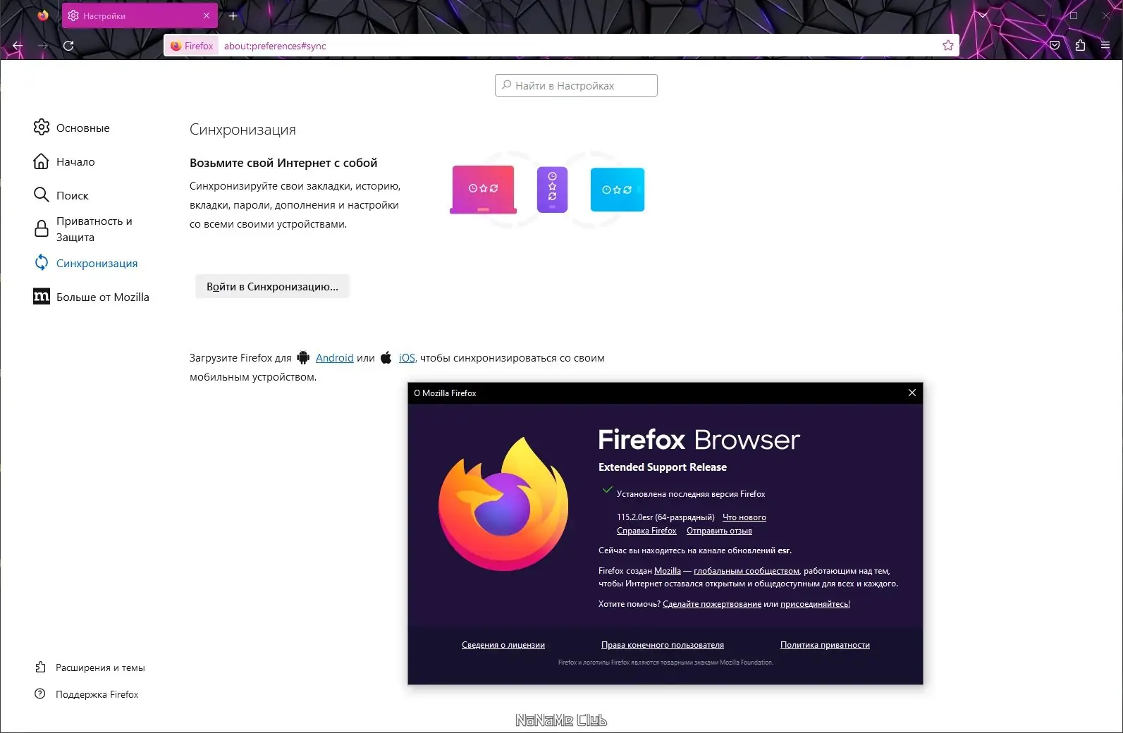 Mozilla Firefox — это современный веб-браузер с открытым исходным кодом, разработанный фондом Mozilla. Он сочетает в себе высокую производительность, продуманный интерфейс и передовые функции безопасности. Программа поддерживает широкий спектр инструментов для комфортного и защищённого серфинга в интернете, включая блокировку всплывающих окон, работу с множеством вкладок и расширенные настройки конфиденциальности. Благодаря гибкой архитектуре и поддержке дополнений, Firefox подстраивается под индивидуальные потребности пользователя. Версия ESR предназначена для корпоративного использования и обеспечивает стабильность за счёт продлённого цикла обновлений.