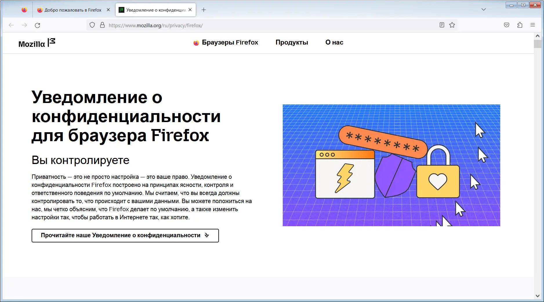 Firefox Browser обеспечивает мгновенное отображение содержимого страниц и надёжную защиту от фишинга и вредоносных ресурсов.