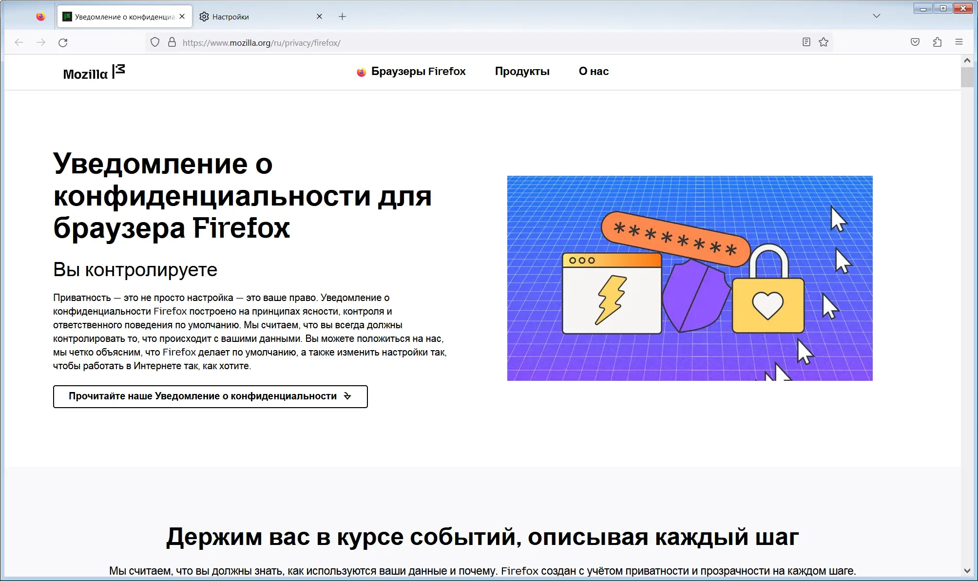 Firefox предлагает продвинутые функции конфиденциальности, включая защиту от отслеживания и режим приватного просмотра с повышенной защитой.