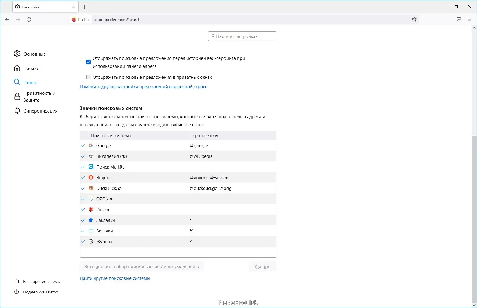- Встроенная панель поиска даёт быстрый доступ к популярным поисковым системам и онлайн-словарям.
