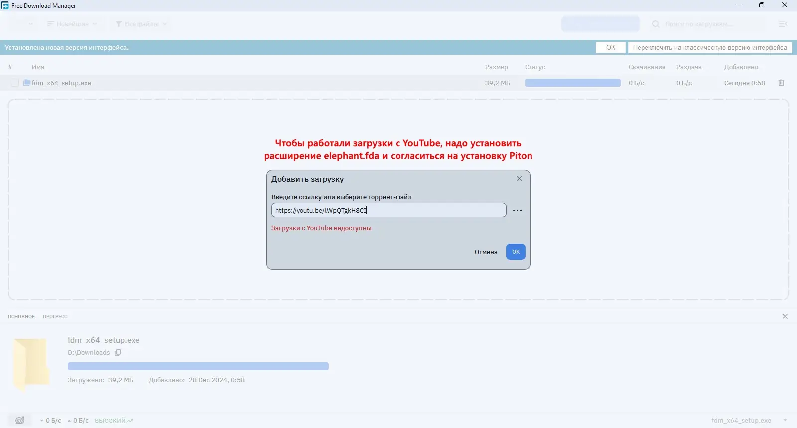 После установки программа автоматически интегрируется в браузеры и начинает перехватывать ссылки на загрузку. Пользователь может вручную добавлять URL, вставлять ссылки из буфера обмена или перетаскивать их в плавающее окно-ловушку. Для скачивания видео с YouTube требуется установка дополнительного расширение, например, Elephant, которое активирует поддержку потоковых сервисов. После его установки и настройки, ссылка на видео добавляется вручную, после чего становится доступен выбор качества и формата. Программа также позволяет настраивать приоритеты задач, ограничивать скорость загрузки и выгружать только нужные части архивов.