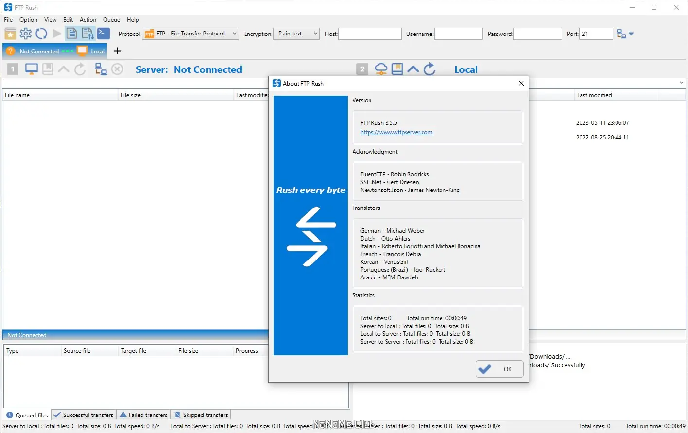 FTP Rush — это бесплатный FTP-клиент для быстрой и безопасной передачи данных между локальным компьютером и серверами. Программа поддерживает протоколы FTP, FTPS, SFTP и TFTP, обеспечивает синхронизацию каталогов, работу с несколькими соединениями в виде вкладок и высокую скорость обмена информацией. Утилита подойдёт как для повседневного использования, так и для профессиональных задач в сфере управления файлами на удалённых хостах.