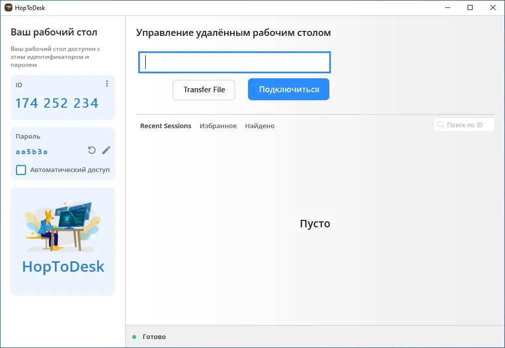 HopToDesk — это инструмент, позволяющий управлять удалёнными устройствами с высокой степенью защиты. Он идеально подходит для тех, кто ищет надёжное решение для удалённой работы, диагностики систем или помощи родственникам и коллегам. Программа не требует сложной инфраструктуры и работает на большинстве современных операционных систем. Что это за программа — становится ясно уже при первом запуске: это простой, но функциональный инструмент удалённого доступа с открытым исходным кодом.