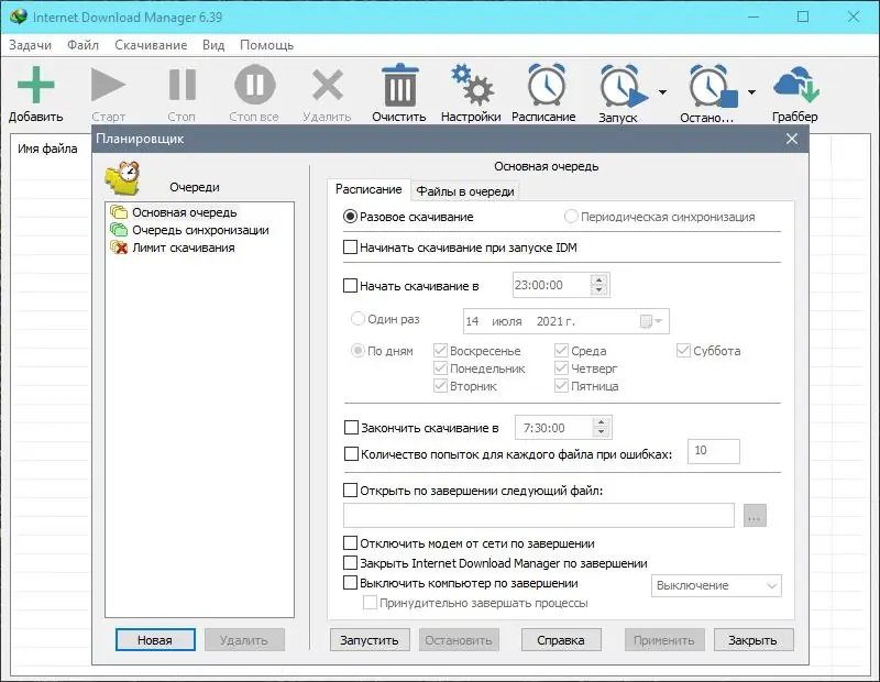 - Возможность настройки расписания загрузок, что позволяет использовать ночные тарифы или избегать перегрузки канала в часы пик.