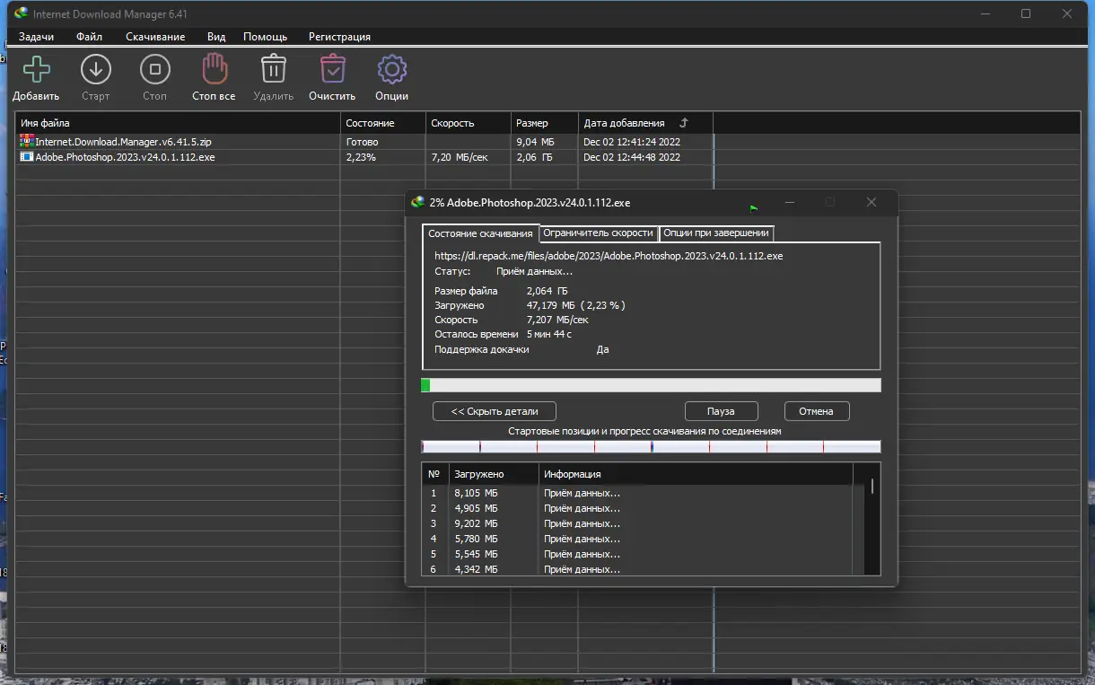 Internet Download Manager — это мощный инструмент для ускорения и управления загрузкой файлов из интернета, поддерживающий докачку, расписание и интеграцию с популярными браузерами. Программа эффективно использует технологию динамической сегментации, позволяя значительно увеличить скорость скачивания контента любого типа. Благодаря интеллектуальному распределению нагрузки и надёжной системе восстановления, она остаётся одним из лидеров среди менеджеров закачек.