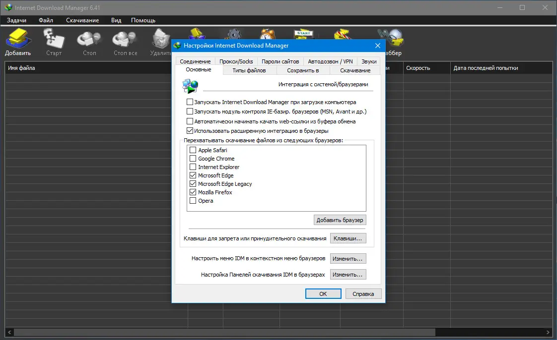 - Автоматическое перехватывание ссылок из браузеров при интеграции через расширение
