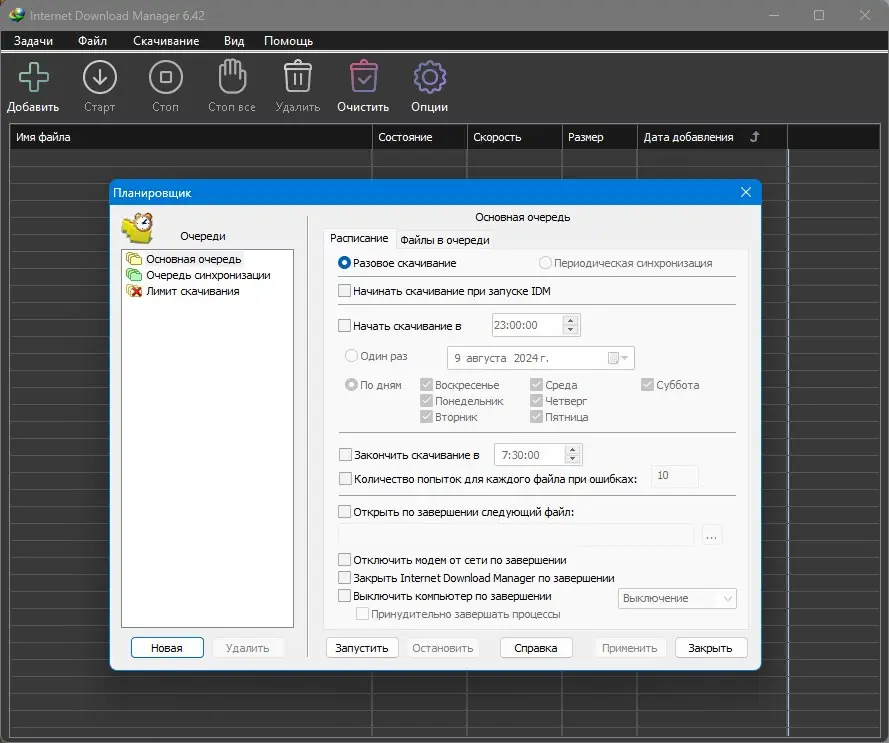 - Гибкое расписание для отложенных и ночных закачек.