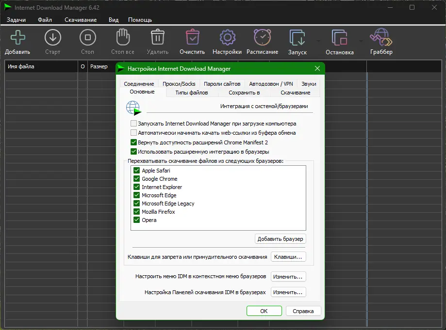 Актуальная версия Internet Download Manager с номером build 6.42 доступна для установки на современные системы Windows. Сборка включает все необходимые компоненты, включая модули интеграции и дополнительные темы оформления. Программа поддерживает работу с торрент-ссылками, потоковым видео и позволяет скачивать контент с множества источников, включая облачные хранилища и медиаплатформы. Для обхода ограничений на доступ к некоторым ресурсам рекомендуется использовать прокси или VPN.