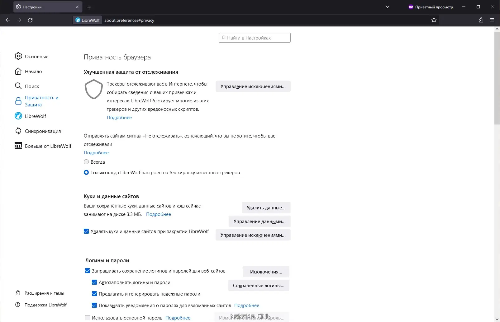 LibreWolf не требует дополнительной настройки — приватность включена «из коробки».