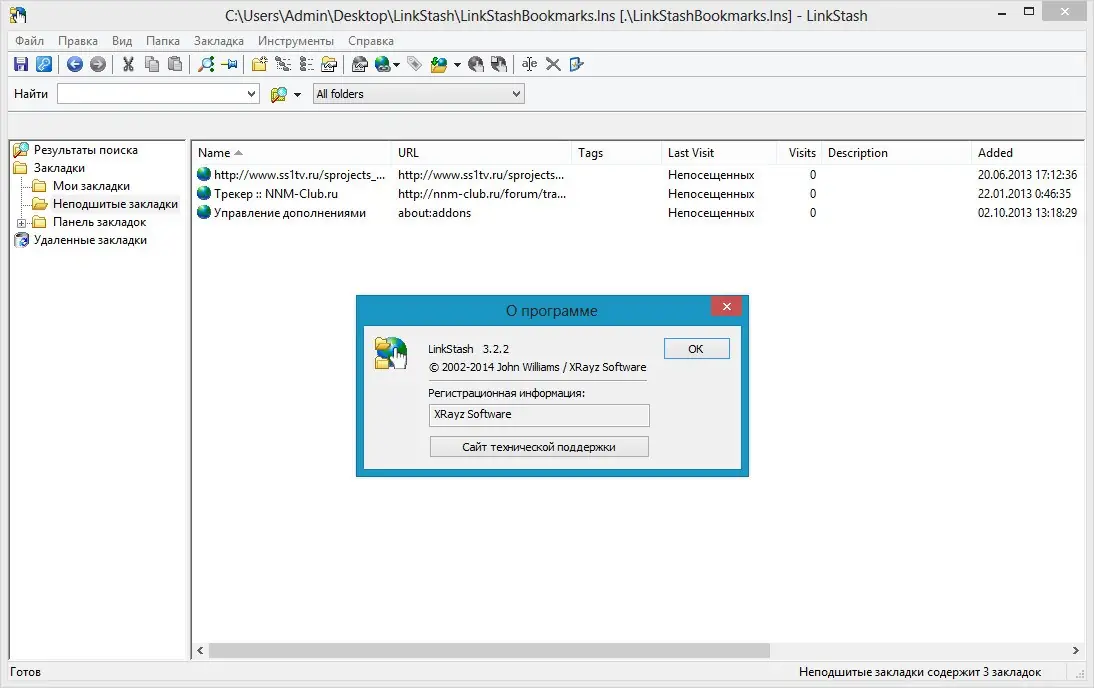 Программа сочетает в себе простоту интерфейса и мощные функции управления закладками.