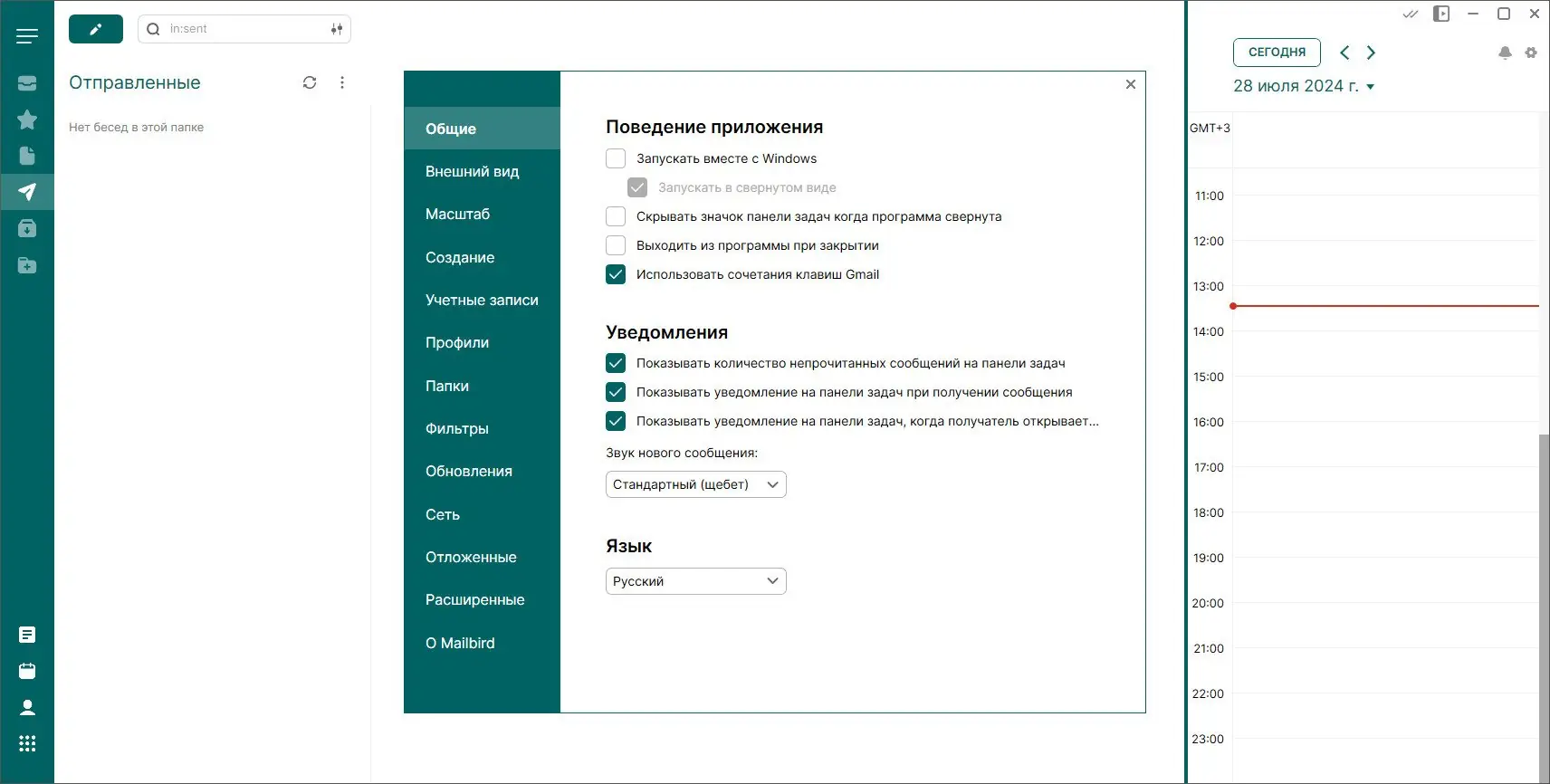 Mailbird разработан как альтернатива стандартным почтовым приложениям, предлагая пользователям более гибкий и визуально привлекательный инструмент для работы с электронной почтой. Интерфейс программы выполнен в лаконичном стиле: слева отображаются папки и ярлыки, в центре — цепочки писем, а справа — содержимое выбранного сообщения. Ниже располагаются встроенные приложения, расширяющие функциональность. Программа поддерживает 17 языков, включая русский, что делает её доступной для широкого круга пользователей.