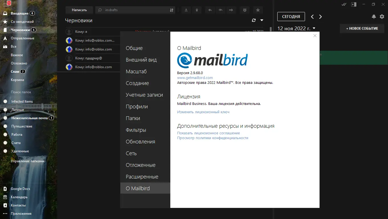 Mailbird обеспечивает локальное хранение всех писем, что гарантирует конфиденциальность и защиту персональных данных.