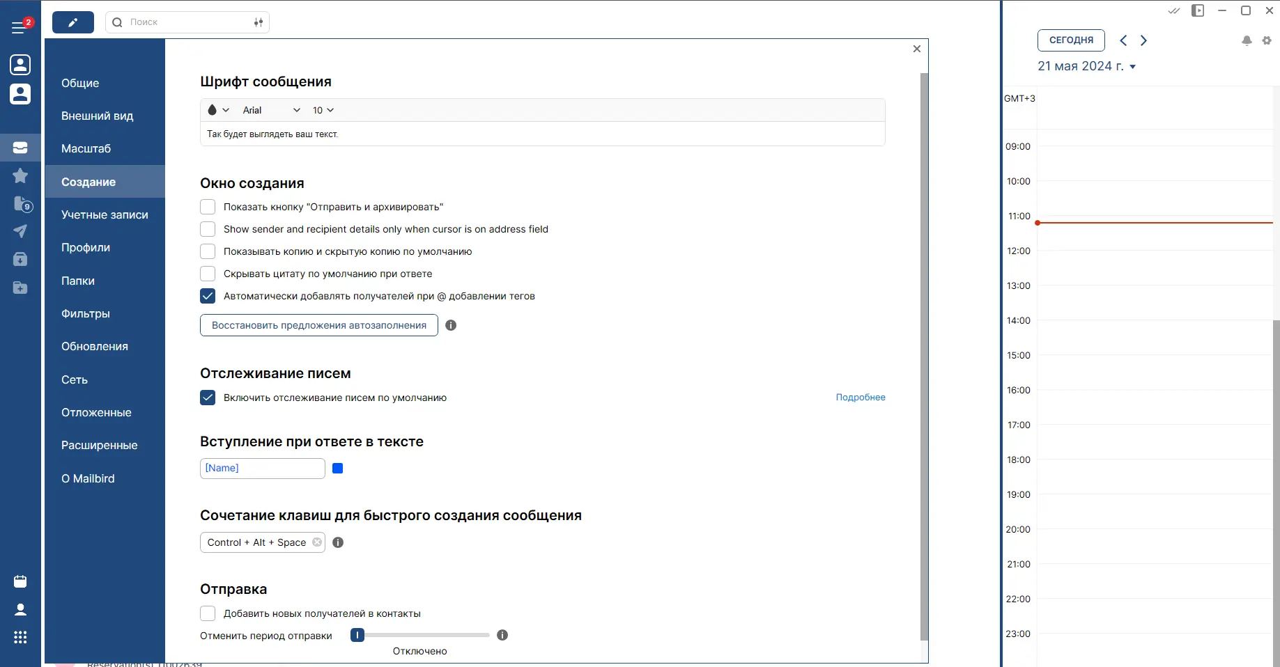 Особое внимание в Mailbird уделено скорости взаимодействия: благодаря оптимизированному движку и отсутствию лишних элементов, работа с письмами становится максимально быстрой и интуитивной.