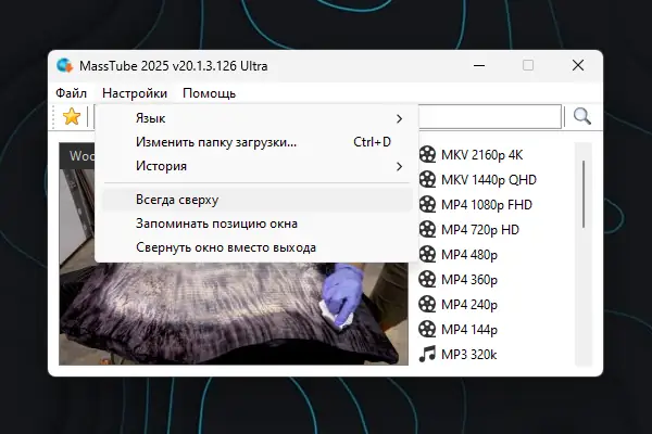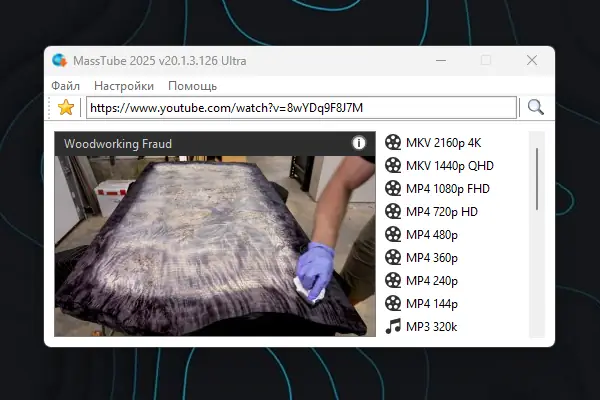 MassTube — это легковесная утилита для быстрого скачивания видео с YouTube и других популярных платформ. Программа работает с минимальным потреблением ресурсов, поддерживает высокие разрешения, включая Ultra HD, и позволяет сохранять контент в различных форматах без необходимости авторизации. Интерфейс интуитивно понятен, а процесс загрузки занимает всего несколько кликов.