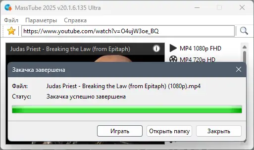 Использование программы не вызывает затруднений благодаря минималистичному дизайну и логичной структуре. Достаточно скопировать ссылку на видео с YouTube или другого поддерживаемого сервиса и вставить её в поле поиска. После анализа ссылки MassTube отобразит доступные форматы и разрешения, из которых можно выбрать оптимальный вариант для скачивания.