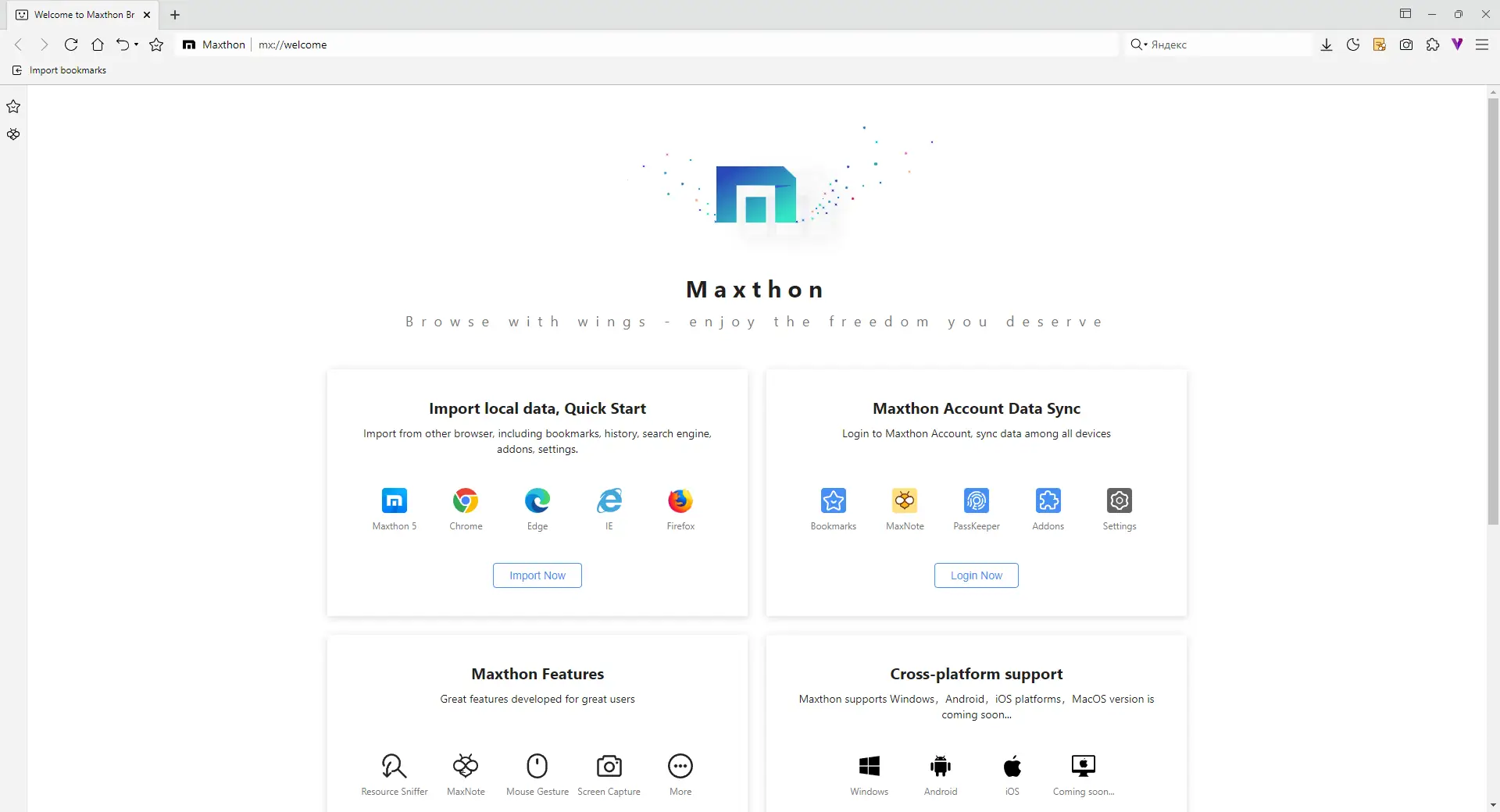 Maxthon Browser эффективно сочетает в себе производительность, безопасность и облачные технологии, делая веб-серфинг более удобным и защищённым.